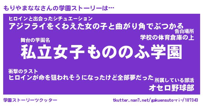 | 伝説のあだ名 | 『不死鳥の竜騎士もりやまなな』 |