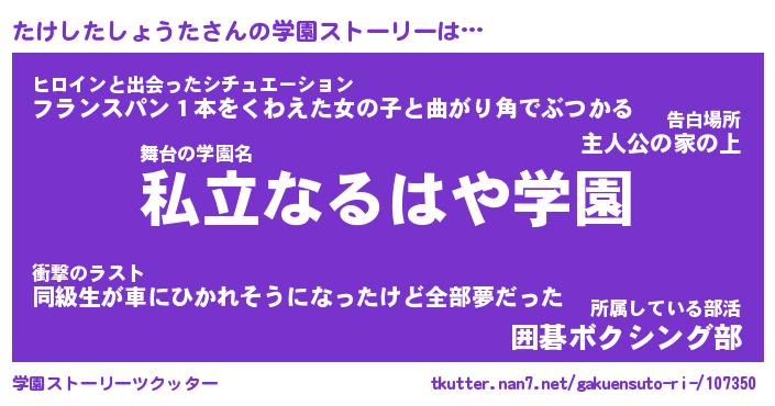 | 男性向けラノベタイトル風あだ名 | 『たけしたしょうたの憂鬱』 |