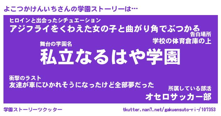 | 女子向けラノベタイトル風あだ名 | 『(仮)よこつかけんいちのやんごとなき事情』 |