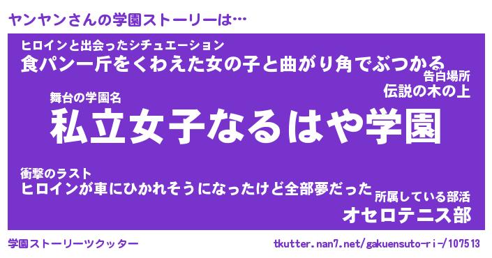 | 男性向けラノベタイトル風あだ名 | 『ヤンヤンアートオンライン』 |