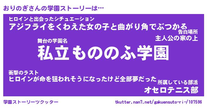 | 女子向けラノベタイトル風あだ名 | 『(仮)おりのぎのやんごとなき事情』 |