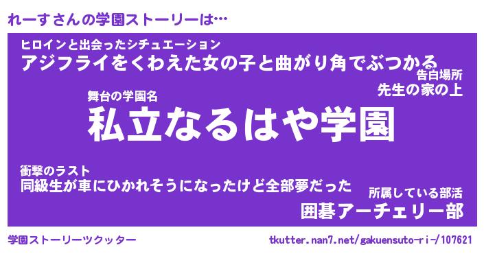| 男性向けラノベタイトル風あだ名 | 『れーすの憂鬱』 |
