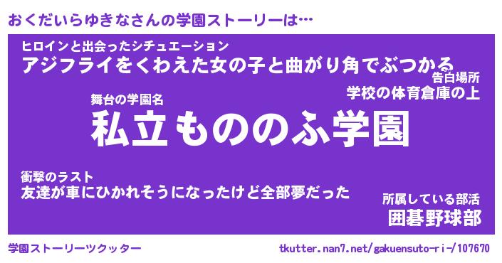 | 男性向けラノベタイトル風あだ名 | 『おくだいらゆきなの憂鬱』 |