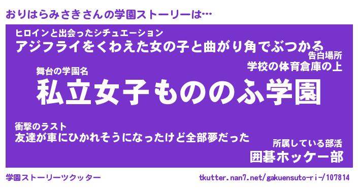 | 伝説のあだ名 | 『封印されし竜騎士おりはらみさき』 |