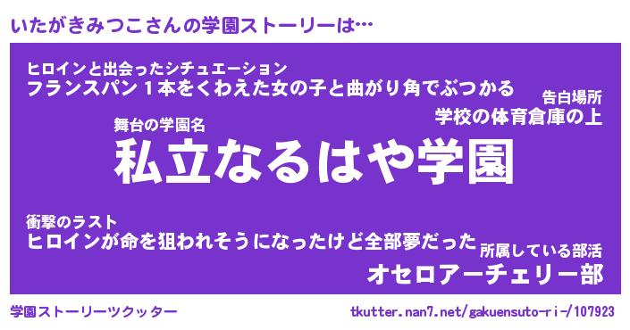 | 男性向けラノベタイトル風あだ名 | 『いたがきみつこの憂鬱』 |