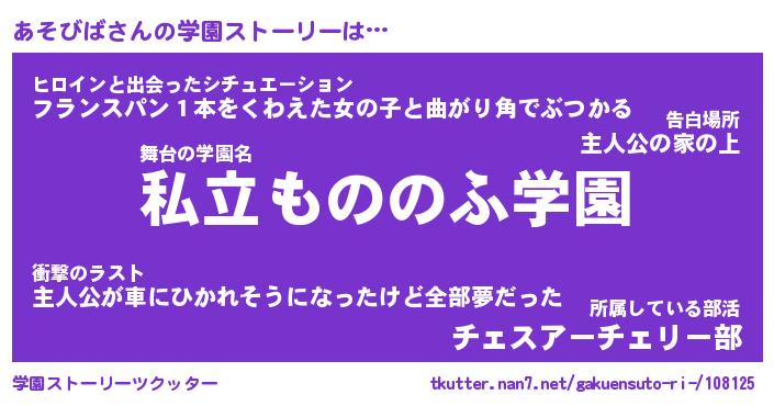 | 男性向けラノベタイトル風あだ名 | 『あそびばの憂鬱』 |