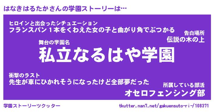 | 男性向けラノベタイトル風あだ名 | 『はなきはるたかの憂鬱』 |