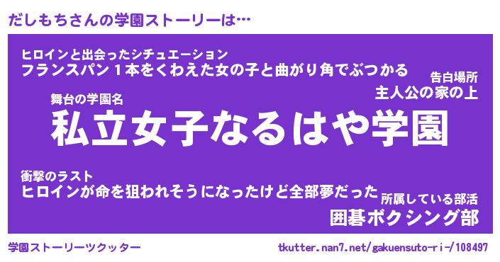 | 告白場所 先生の家の上 …「ふぃぎゅこ」 | 2月17日 06:24 |