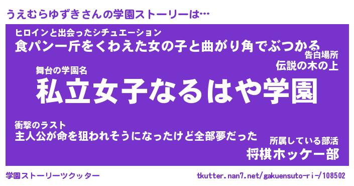 | 女子向けラノベタイトル風あだ名 | 『誰かこのうえむらゆずきを説明してください! ~契約から始まるウェディング~』 |