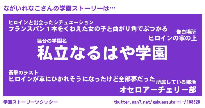 | 女子向けラノベタイトル風あだ名 | 『(仮)ながいれなこのやんごとなき事情』 |