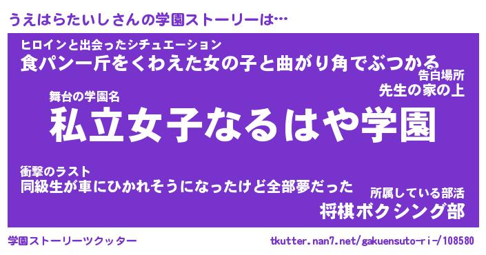 | 伝説のあだ名 | 『封印されしスナイパーうえはらたいし』 |