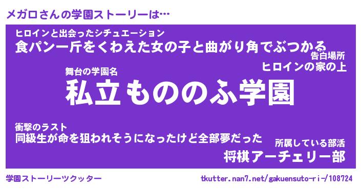 | 男性向けラノベタイトル風あだ名 | 『メガロの憂鬱』 |