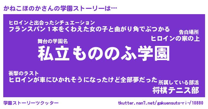 | 男性向けラノベタイトル風あだ名 | 『かねこほのかの憂鬱』 |