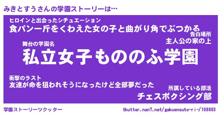 | 女子向けラノベタイトル風あだ名 | 『誰かこのみきとすうを説明してください! ~契約から始まるウェディング~』 |