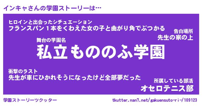| 意味不明あだ名 | 『ペロリンインキャ』『永久保存インキャ』 |