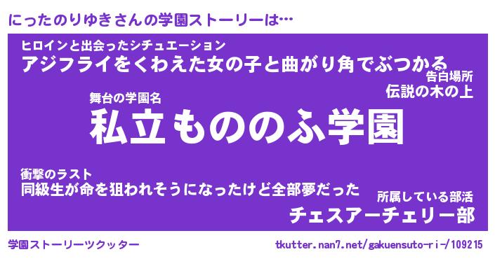 | 男性向けラノベタイトル風あだ名 | 『にったのりゆきの憂鬱』 |