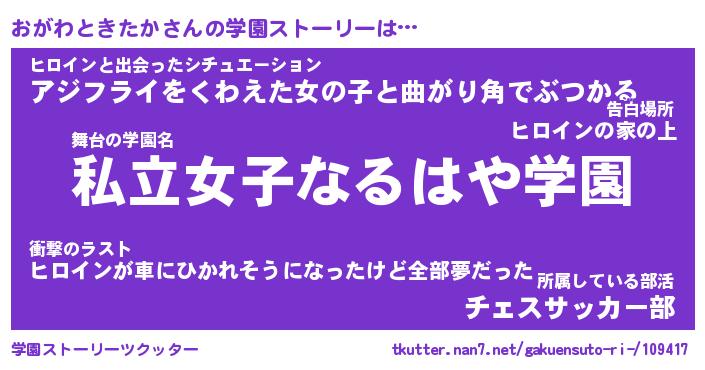 | 女子向けラノベタイトル風あだ名 | 『誰かこのおがわときたかを説明してください! ~契約から始まるウェディング~』 |