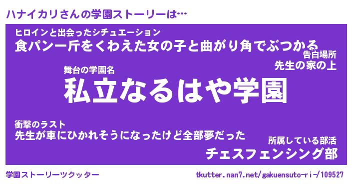 | ファンタジー風あだ名 | 『ハナフェル』『エターナルハナイカリー』 |