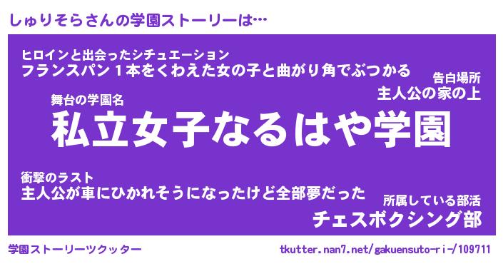 | 伝説のあだ名 | 『封印されしスナイパーしゅりそら』 |