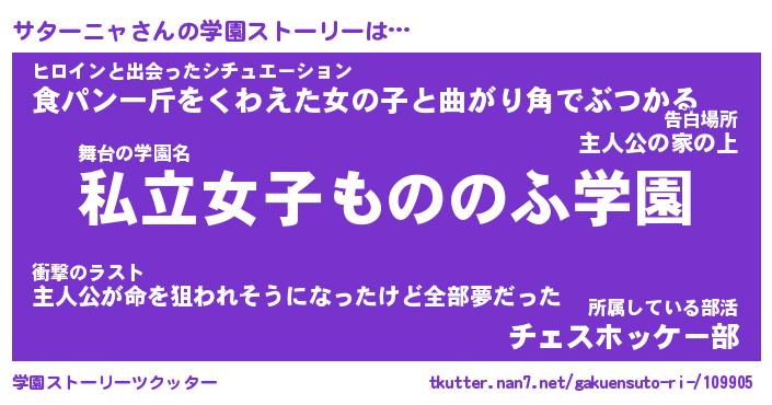 | 男性向けラノベタイトル風あだ名 | 『サターニャアートオンライン』 |