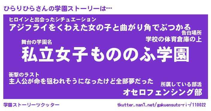 | 女子向けラノベタイトル風あだ名 | 『ひらりひら姫と円卓の騎士』 |