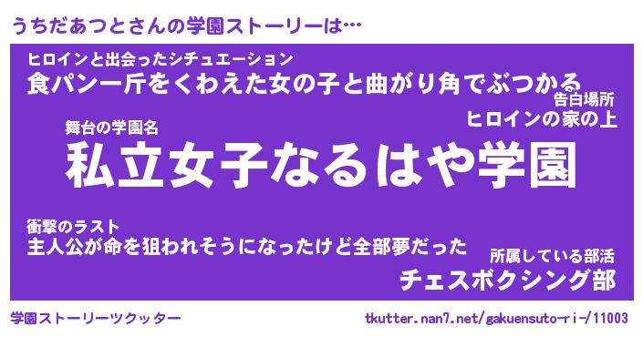 | 肩書あだ名 | 『うちだあつと店長』『うちだあつと班長』 |