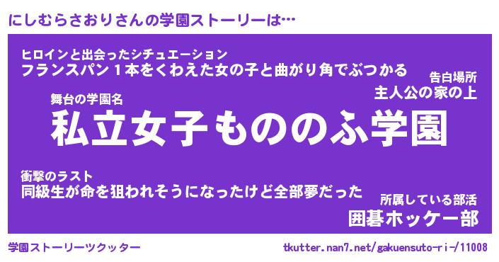 | 女子向けラノベタイトル風あだ名 | 『にしむらさおり姫と円卓の騎士』 |