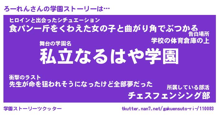 | 告白場所 先生の家の上 …「ふぃぎゅこ」 | 2月17日 06:24 |