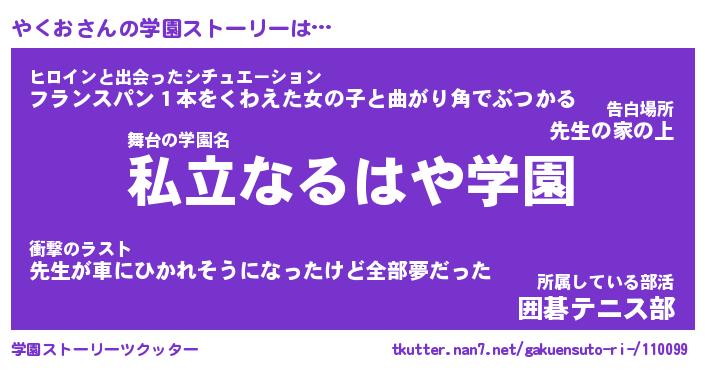 | 伝説のあだ名 | 『伝説のスナイパーやくお』 |