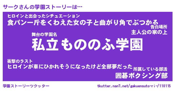 | 男性向けラノベタイトル風あだ名 | 『サークの憂鬱』 |