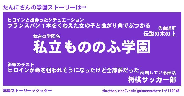 | 男性向けラノベタイトル風あだ名 | 『たんにの憂鬱』 |