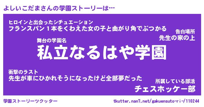 | 胡散臭い通販商品みたいなあだ名 | 『必ず成功する水晶球…その名も「よしいこだま」』 |