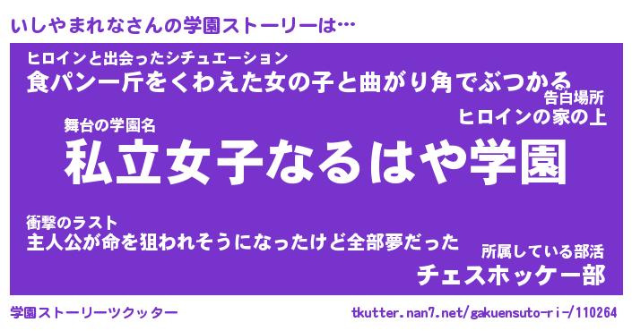 | ヒーロー風カッコイイあだ名 | 『スーパーイシヤマレナ』『幻影騎士イシ』 |