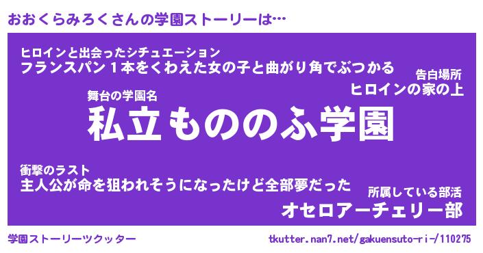 | 男性向けラノベタイトル風あだ名 | 『おおくらみろくの憂鬱』 |