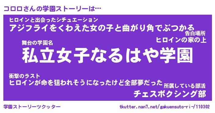 | ファンタジー風あだ名 | 『コロフェル』『エターナルコロロー』 |