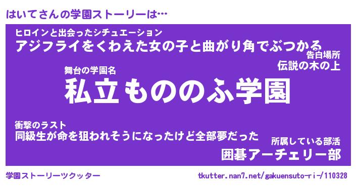 | 告白場所 先生の家の上 …「ふぃぎゅこ」 | 2月17日 06:24 |