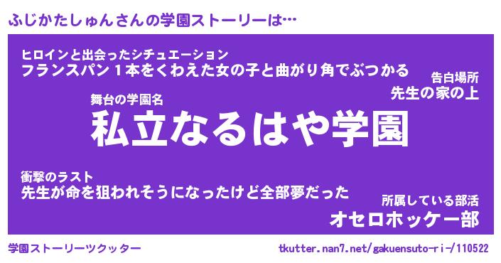 | 告白場所 先生の家の上 …「ふぃぎゅこ」 | 2月17日 06:24 |