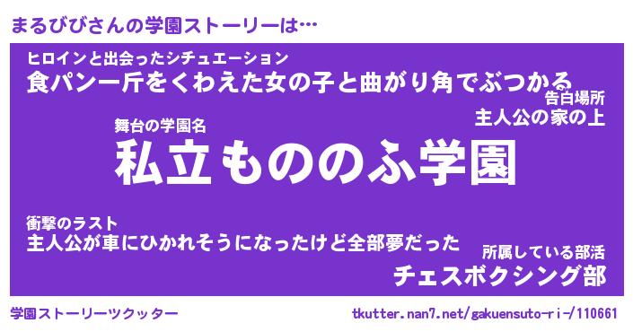 | 男性向けラノベタイトル風あだ名 | 『まるびびの憂鬱』 |