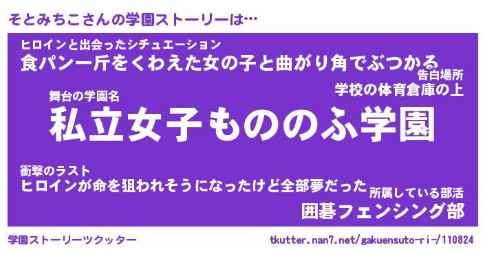 | 男性向けラノベタイトル風あだ名 | 『ソトミチコアートオンライン』 |