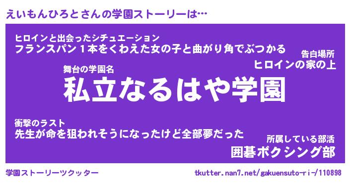 | 男性向けラノベタイトル風あだ名 | 『えいもんひろとの憂鬱』 |