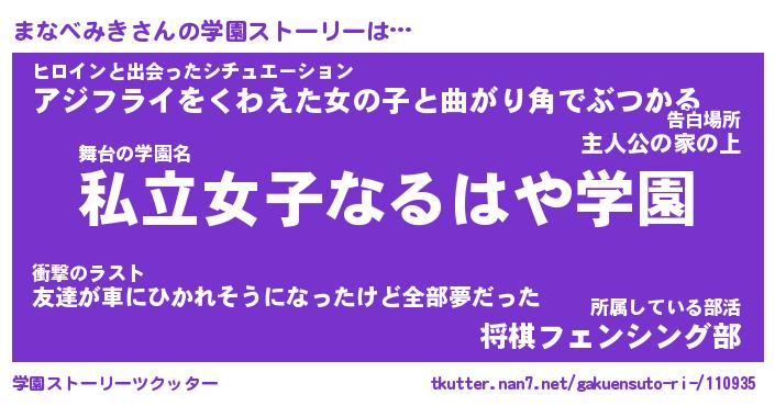 | 胡散臭い通販商品みたいなあだ名 | 『億万長者になれる水晶球…その名も「まなべみき」』 |
