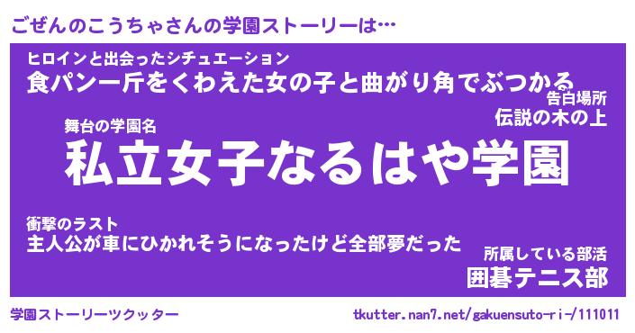 | 告白場所 先生の家の上 …「ふぃぎゅこ」 | 2月17日 06:24 |