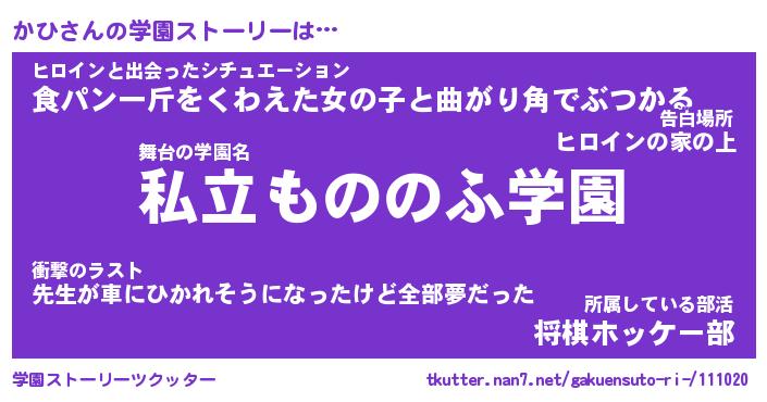 | 男性向けラノベタイトル風あだ名 | 『かひの憂鬱』『ノーゲーム・ノーカヒ』 |