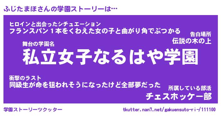 | 伝説のあだ名 | 『封印されしスナイパーふじたまほ』 |