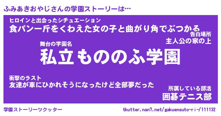 | 男性向けラノベタイトル風あだ名 | 『ふみあきおやじの憂鬱』 |