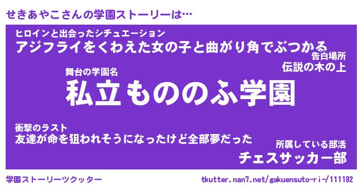 | 女子向けラノベタイトル風あだ名 | 『せきあやこ姫と円卓の騎士』 |