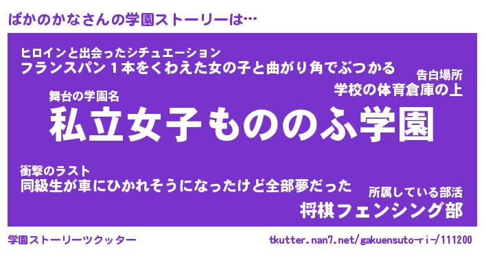 | ヒーロー風カッコイイあだ名 | 『スーパーバカノカナ』『天弓騎士バカ』 |