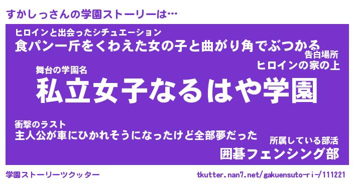 | 告白場所 先生の家の上 …「ふぃぎゅこ」 | 2月17日 06:24 |