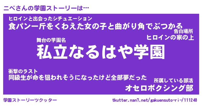 | 胡散臭い通販商品みたいなあだ名 | 『必ず成功する霊験あらたかなお札…その名も「ニベ」』 |