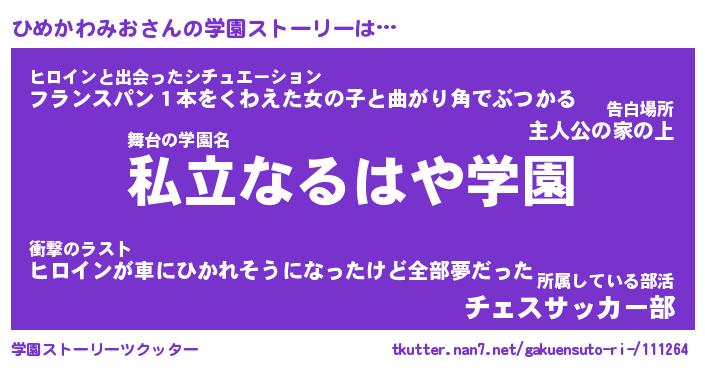 | 男性向けラノベタイトル風あだ名 | 『ひめかわみおの憂鬱』 |